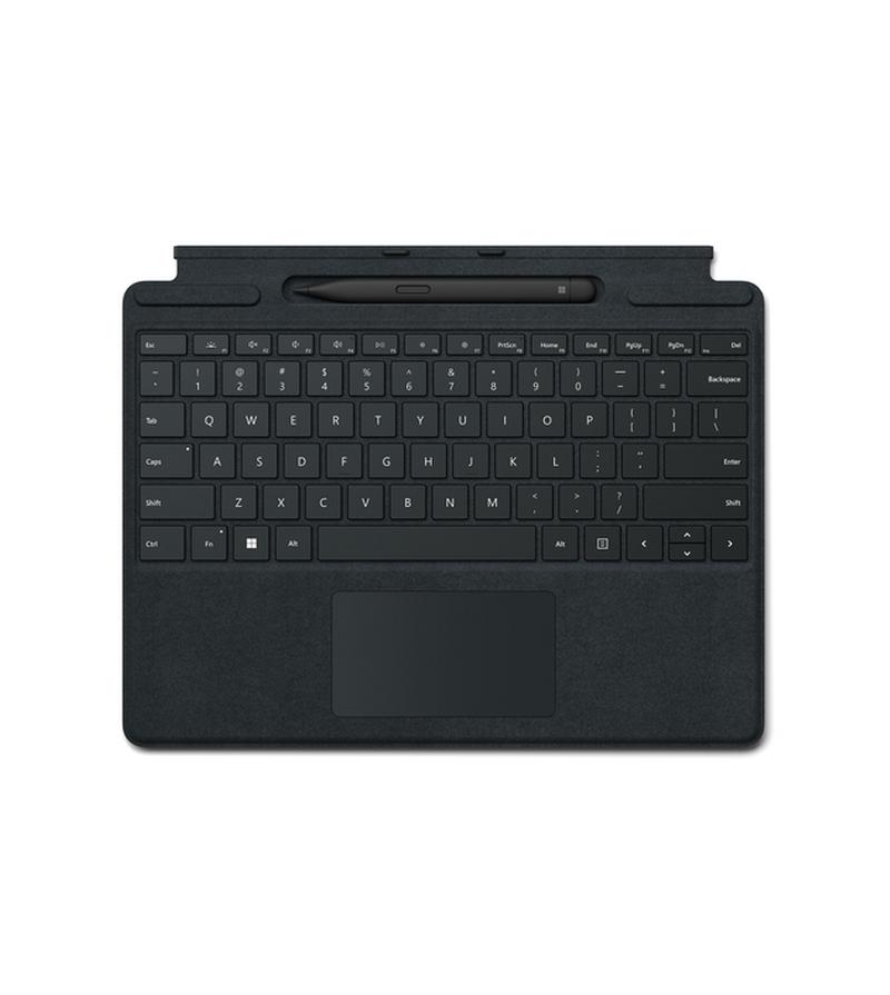 Surface Bundle Tastiera Flex con Slim PenCOMPATIBILITÀDedicatoSìSPECIFICHEColore primarioneroColore secondarioneroTipologia specificaTastieraMaterialeAlcantaraAltre informazioniTASTIAttivazione: tasti mobili meccaniciLayout: QWERTY (Italiana), riga completa dei tasti funzione (F1-F12)Tasti dedicati per CopilotFootnote5, per la disattivazione del...